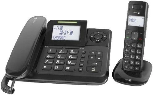 Schnurgebundenes Telefon mit optischer Anrufsignalisierung, Anrufbeantworter und zusätzlichem DECT Mobilteil.