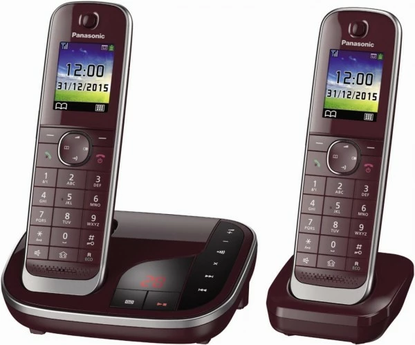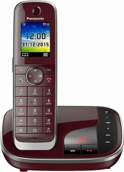 Panasonic KX-TGJ320GR Schnurlostelefon mit Anrufbeantworter in Weinrot – komfortable Festnetz-Telefonie
