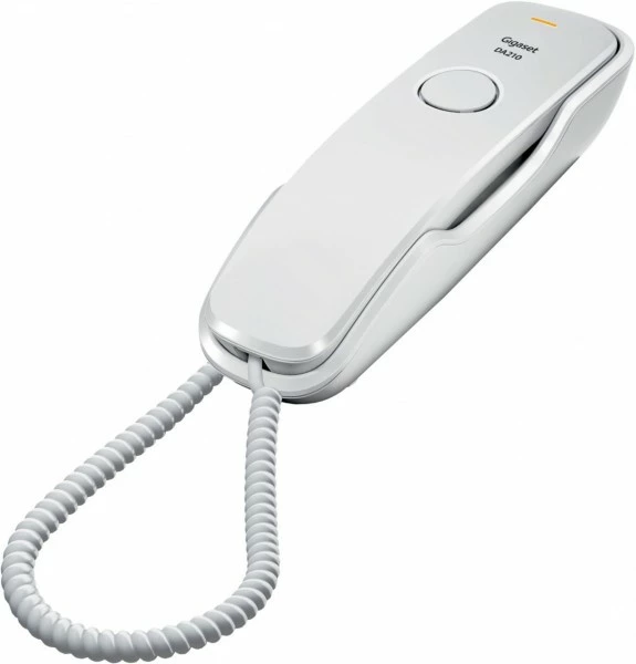 Das Gigaset DA210 präsentiert sich als das kompakte schnurgebundene Telefon mit Basiskomfort. Die ideale Lösung für unkompliziertes Telefonieren zu Hause und im Büro. Es ist wandmontierbar, um Platz zu sparen. Mit einem elastischen Kabel von bis zu 3 Meter Länge verschafft es Bewegungsfreiheit beim Telefonieren. Bis zu 10 Kurzwahleinträge kann man im Gigaset DA210 programmieren, um die Personen, mit denen am häufigsten spricht, schnell anwählen zu können. Gerade aufgelegt und beim Telefonat noch was vergessen? Mit der Funktion Wahlwiederholung sind Sie mit einem Tastendruck sofort wieder verbunden. Das Gigaset DA210 kann an das öffentliche Telefonnetz ebenso wie an das private Netz im Büro angeschlossen werden.
