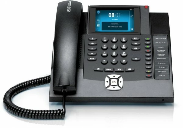 Auch der integrierte Anrufbeantworter und die Unterstützung für IP-Kameras sind einfach zum kleinen Tarif freizuschalten. Für den Anschluss von Standard-Headsets bietet das COMfortel 1400 IP eine separate Schnittstelle. Eine oben in der Displayhaube integrierte LED signalisiert Anrufe und Nachrichten in der Voicemailbox.