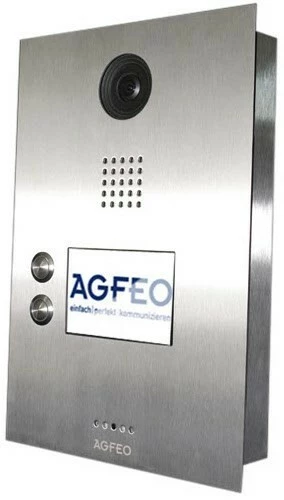 Die AGFEO IP-Video TFE 2 überzeugt durch Ihre hervorragende Verarbeitung und einen Blickwinkel von 170°. Das V4A Gehäuse in Industriequalität ist nach IP 65 zertifiziert und kann sowohl für Auf- als auch für Unterputzmontage genutzt werden.