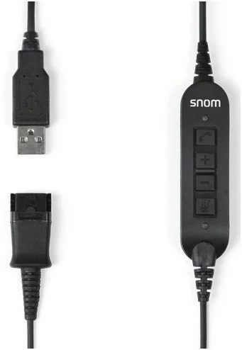 Das Adapterkabel ACUS von Snom verbindet die Headsets A100 M/D mit jedem Snom-Tischtelefon mit USB-Anschluss. Die integrierten Tasten für Verbinden/Trennen des Anrufs, die Stummschaltfunktion und die Lautstärkeeinstellung ermöglichen ein noch effektiveres Telefonerlebnis.