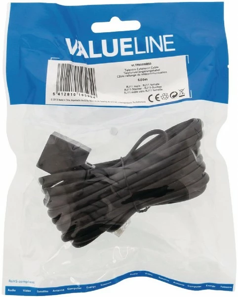 Dieses Kabel ist geeignet, um das RJ11-Telefonkabel zwischen Telefon und Telefondose zu verlängern.